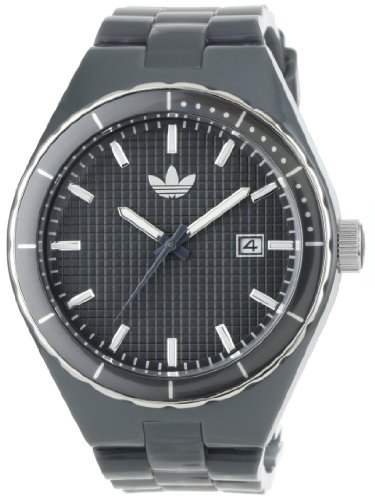 Adidas Item ID: #199Adidas Unisex Watch ADH2069Item DescriptionAdidas Unisex Grey Sports Watch ADH2069. Grey is cool, and so is this trendy watch by Adidas. Grey rubber strap and blue and silver bezel and silver batons. Textured grey dial with date window |