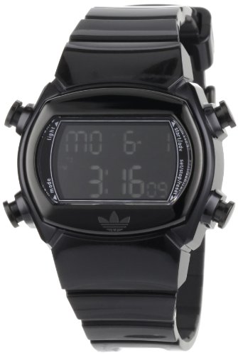 Adidas Item ID: #196Adidas Unisex Watch ADH6098Item DescriptionThis watch is an excellent timepiece the represents what Adidas is all about. Its digital quartz movement displaying negative (light-on-dark) numbers really makes this watch stand out. Other features include : multi-function display : regular time, chronograph, alarm, 10 lap memory, and timer, and displays the time in hours, minutes, seconds, am/pm, date, and day of the week. This watch is water resistant to 50 meters (165 feet). |
