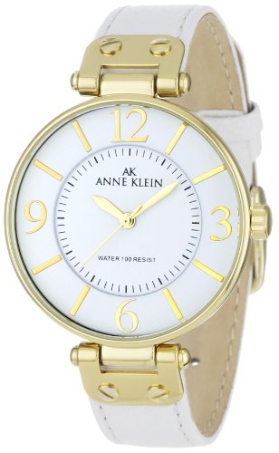 AK Anne Klein Item ID: #1081AK Anne Klein Women’s 109168WTWT Gold-Tone Round White Leather Strap WatchProduct Information: