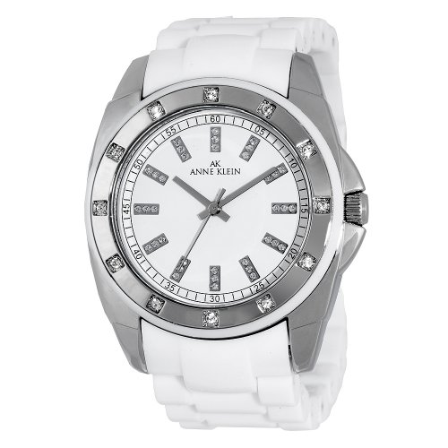 AK Anne Klein Item ID: #1084AK Anne Klein Women’s 109179WTWT Silver-Tone Swarovski Crystal Accented White Plastic WatchProduct Information: