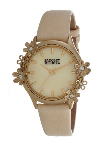 Item DescriptionIf style is important to you then these glam timepieces are right for your wrist. Along with being functional; they are timeless and sophisticated. Look to these watches to liven up any day or night. Band Color : Cream Leather; Band Width : 18mm near case; 16mm near clasp/buckle; Bezel Color : Gold; Case : Gold + Circle-shaped; Case Finish : Flat + Stainless Steel; Case Thickness : 8mm; Case Width : 35mm; 37mm with crown; Clasp / Buckle : Strap Buckle; Dial : Cream + analog; Hand Color : Gold; Movement : Japanese + quartz; Time Zones : Single; Water Resistance : 1 atm; |
