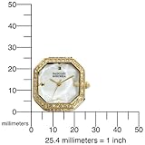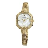 Item DescriptionThe Badgley Mischka Women’s Crystal Bracelet Watch is an embellished timepiece ideal for formal wear. The gold-toned case and bezel are made from nickel-free brass and decorated with a row of white Swarovski crystals. Protected by a durable mineral crystal, the square mother-of-pearl dial displays narrow gold-toned hour hands and a matching sweep second hand. Square gold-toned hour markers set at twelve, three, six, and nine o’clock complete the dial, which is printed with the Badgley Mischka logo. A bangle-style gold-toned bracelet band circles around the wrist, accented with rows of Swarovski crystals and a flexible-link back. Closing with a jewelry clasp, the watch band measures 7 millimeters wide and fits comfortably on most wrists. This elegant brass-and-crystal watch operates on reliable Japanese quartz movement for long-lasting wear. |