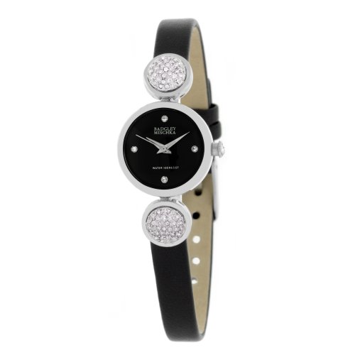 Badgley Mischka Item ID: #2547Badgley Mischka Women’s BA1175BKBK Swarovski Crystals Silver-Tone Black Dial and Black Leather Strap WatchProduct Information: