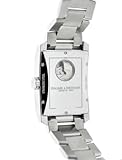 Item DescriptionStainless steel case with a stainless steel bracelet. Fixed stainless steel bezel. White dial with silver tone hands and stick hour markers. Arabic numerals mark the 3, and 9 o’clock position. Date displays at the 6 o’clock position. Automatic movement. Scratch resistant sapphire crystal. Transparent exhibition case back. Case dimensions : 45.5 mm x 30 mm. Case thickness : 11 mm. Hidden folding deployment clasp. Water resistant at 50 meters/ 165 feet. Functions : hours, minutes, seconds, date. Baume and Mercier Mens Hampton Milleis Watch 8819. |