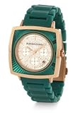 Item DescriptionBand Color : Forest Green Silicone; Band Width : 20mm near case; 18mm near clasp/buckle; Bezel Color : Gold; Case : Gold + Square-shaped; Case Finish : Polished + Stainless Steel; Case Thickness : 13mm; Case Width : 36mm; 38mm with crown; Clasp / Buckle : Deployment; Dial : Silver + analog; Hand Color : Gold; Movement : Japanese + quartz; Time Zones : Single With 24 Hour Dial; Water Resistance : 3 atm; Other Features : Day Dial; Date Dial; 24 Hour Dial |