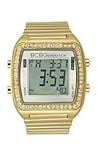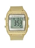 Item DescriptionCasual watch, Digital quartz movement, Positive (dark-on-light) numbers, 1/100-second digital chronograph measures split time, Alarm mode, EL backlight, Digital day-date-and-month display, Digital grey dial, Polished gold-tone stainless steel expansion bracelet, Polished gold-tone metal bezel encrusted with crystals, Polished gold-tone metal rectangular case, Polished gold-tone metal selector buttons, Stainless steel caseback, Mineral crystal |