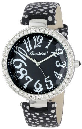 Item DescriptionLadies’ Silvertone Cut Crystal Lens Watch with Spotted Design Genuine Black Leather Strap, Czech Stone Case and Black Dial. This timepiece is presented in a Bombshel gift box. All Bombshell watches are built by skilled craftsmen using the highest quality materials to enhance the beauty and utility of each timepiece. Following the latest trends in fashion, our design team creates distinctive and fashionable watches that demand attention and will set you apart from the rest. All of our watches feature a Mineral Crystal, which is known for its fine reflective characteristics, strength, shock resistance and clarity. Using the best Japanese movements means that you will always have accurate and reliable time. With over a hundred styles to choose from, you can build an affordable and dazzling collection to suit your every need and look. With our three year manufacturer’s warranty you can rest assured we will stand behind every watch we create. Bombshell, Its Time! |