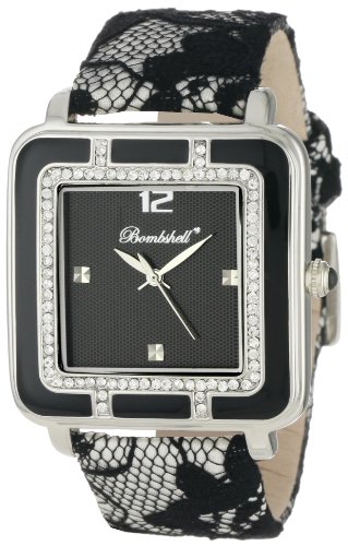 Bombshell Item ID: #4640Bombshell Women’s BS1065BK Lily Fashionable Black Lace Overlay Strap Crystal Case WatchProduct Information: