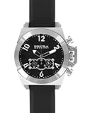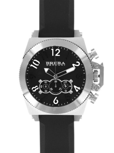 Item DescriptionBrera – Militare (50mm) – Brushed stainless steel case – Sophisticated double dial construction – Extra thick industrial black rubber strap – Unique crown lock design – 60-minute chronograph in 1 second increments – 24 hour time sub-dial – Precise quartz JS50 movement – Water resistant to 100 meters – K1 thick anti-reflective, scratch resistant crystal – Extra-large case measures 50m diameter – 2 years original manufacturers warranty |