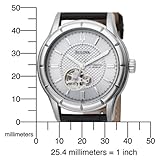 Item DescriptionThe Bulova Men’s Mechanical Hand-Wind Automatic Strap Silver White Dial Watch showcases a textured white dial with a discrete skeleton window that creates a refined, expressive face worthy of business and casual wear. Constructed with a stainless steel case, the watch includes a stationary stainless steel bezel, and a black leather wristband secured with a push-button-deployment clasp. A durable mineral window shields the textured white dial, which features silver-tone hour markers, slim black minute indexes, and silver watch hands. A unique skeleton window rests between five and eight o’clock. Powered by Japanese-automatic movement, the timepiece is water resistant to 99 feet (30 M). It is presented in a padded Bulova watch case. |