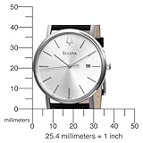 Item DescriptionThe classic clean look of the Bulova Men’s Strap Silver Dial Watch #96B104 is ideal for a man who is moving up in the world and wants to look good doing it. The white circle dial displays silver stick indices for hours. A subdial at three o’clock shows the date. The bezel and case are silver stainless steel. This watch looks good at the office or at a power lunch. The black leather band is textured for detail and stays comfortable and secure with a traditional buckle clasp. This Bulova timepiece has precision three-hand Japanese quartz movement. . It is presented in a black gift box and is water resistant to 99 feet (30 meters). |