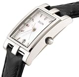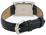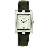 Item DescriptionThis elegant tank-style watch from Bulova has sophisticated styling that makes it perfect for both professional and casual wear. Sleek silvertone hands and bar markers adorn the crisp white dial, which features a sweep second hand and a date window at the six o’clock position. The dial is framed by a rectangular polished steel bezel and presents on a textured black leather strap that fastens with a buckle closure. Other notable features of this watch include precise quartz movement and a curved scratch-resistant crystal. This watch is water-resistant to 30 meters. |