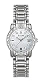 Item DescriptionThe sparkling, luxurious Bulova Women’s Diamond Accented Calendar Watch #96R105 showcases 24 hand-set diamonds on its stainless steel case. A white mother-of-pearl dial with luminous hands and markers, a convenient calendar window at three o’clock, a second hand, and a fashionable, stainless steel bracelet band with a deployment buckle contribute to this timepiece’s unique look. Also offering a durable mineral crystal, reliable Japanese quartz movement, and water resistance to 99 feet. |