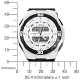 Item DescriptionCasio’s Ana-Digi sport watch is the ideal watch for men on the move. It features a full-face digital and analog display over a white dial for time telling at a glance and a black resin band for all-day comfort. Great for swimmers and runners, this sports watch also includes 60-lap memory, a day, date, and month display, and is water resistant to a depth of 330 feet. The 43.5-millimeter metal case is polished to a sleek yet rugged looking finish. |