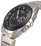 Item DescriptionPowerfully styled and packed full of robust timekeeping and environmental features, the Casio Edifice stainless steel watch for men (model EFA119BK-1AV) holds its own in both professional quarters and rugged outdoor terrain. This round analog/digital timepiece features a black bezel framing a standard analog dial with white stick hour markers and thin oval skeleton hands. It also offers digital windows for showing current date as well as the watch’s chronograph, which can measure events down to 1/100 of a second. Other stopwatch features include a 50-record memory, single stopwatch mode with lap times and total elapsed time, a dual mode with two independent lap times, and a 100-hour capacity. It also includes a thermometer that measures every even-numbered minute. Other timekeeping features include :