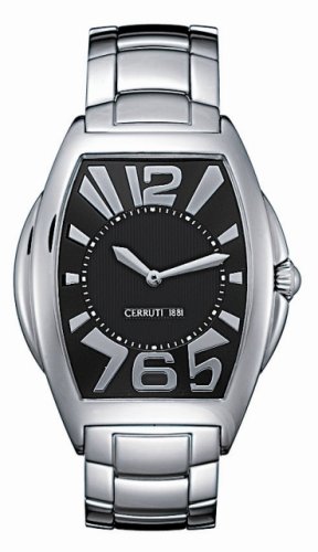Item DescriptionContemporary Italian design and Swiss quality come together in this eye-catching all steel watch from Cerruti. Elegant curves shape the stainless steel case, which is showcased on an integrated steel bracelet. The black watch face features large stylized silvertone numbers and indexes framing a textured inner dial with two sword-shaped hands and a date display. Contributing to the sleek design, the crown guard forms a perfect curve, which is mirrored on the opposite side of the case. This Cerruti watch boasts Swiss quartz movement and is rated water resistant to 30 meters. |