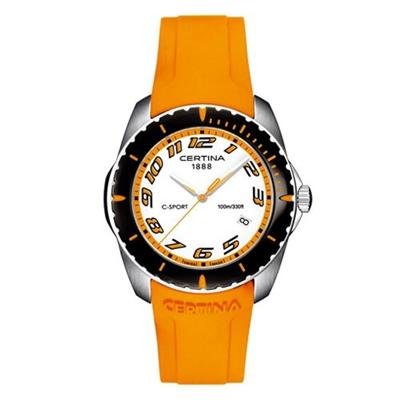 Item DescriptionCertina C-Sport men’s orange rubber strap watch with sapphire crystal C26070984292 / C260.7098.42.92. Certina Watches are a timepiece to treasure for life! Certina, a Swiss watch manufacturer, was established in 1888 by Adolph and Alfred Kurth.; Originally called Grana, the company changed its name to Certina in 1938. The name Certina originates from the Latin “certus” that means “reliable”. Certina quickly became a well-known watch brand and has even become a synonym to the sporty Swiss watches! As a current addition to their strong portfolio of sports associations and partnerships, Certina is currently a sponsor of the BMW Sauber Formula 1 team. Certina watches are well known for their innovations such as the Double Security (DS) technology.; DS provides watches with resistance against shocks and water pressure. In fact, the DS feature is a large part of the Certina watch brand, so much so that various models are named after it.; Some of these models include DS Podium, DS First and DS Action. This fine watch manufacturer fuses athletic elegance with stylish, classical realms of great exclusivity. The technical precision and top-quality parts along with the continuous adaptation of the timepieces to the current fashion styles are the keys to the success of Certina (that has lasted for over a century).; Certina Watches come in a wide selection ranging from sport classic, to sport elegant to sport extreme. Each watch simultaneously exudes self confidence, luxury and sophistication. |