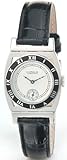 Item DescriptionThis is a “must have?. An extremely rare and highly collectible timepiece today, this 1936 watch was ahead of its time with its sophisticated but elegant design. This timepiece features a round black enamel filled bezel with roman numerals that is suspended within an outer “Tonneau shaped frame. Another unique feature are the hinged lugs that make for style and comfort while wearing. Other features : Palladium plated case and components. Precision quartz movement (Miyota) includes 3 year battery. Second hand sub-dial. Genuine leather strap, 16 millimeters Water resistant 3 year limited warranty Case size 29 millimeters x 43 millimeters. |