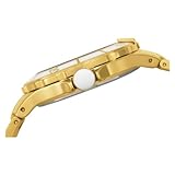 Item DescriptionDress watch, Japanese quartz movement, Polished gold-tone sword hands with luminous accents and grey sweep seconds, Applied polished gold-tone Arabic numbers (excluding five, six and seven o’clock), Black square markers and indices form surrounding minute track, White dial with polished gold-tone logo applique, Adjustable polished gold Ion-plated stainless steel bracelet with jewelry-clasp, Polished gold-tone stainless steel bezel with white top ring and polished gold-tone Arabic numbers/baton markers, Slim polished gold Ion-plated stainless steel round case, Textured gold-tone steel crown with white detailing, Stainless steel screw-down crown, Mineral crystal, 50 meters/165 feet water resistant |