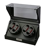 Belocia Item ID: #1401Diplomat Quad (4) Black Wood Finish Watch Winder with Black Carbon Fiber Interior and Japanese Mabuchi MotorProduct Information: