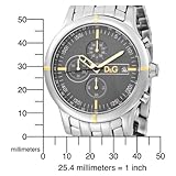 Item DescriptionSports watch, Quartz movement, Chronograph, Polished gold-tone hands and markers, White numbers, markers and indices, Analog date display, Polished silver-tone stainless steel bezel with gold IP accents, case, crown, selector buttons and caseback, 50 meters/165 feet water resistant |