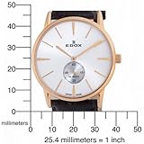 Item DescriptionThis Edox Les Bemonts ultra slim watch is a beautiful Swiss timepiece. The white dial featuring a second sub dial and rose indices is protected by a sapphire anti-reflective crystal. The brown leather strap closes neatly with a buckle clasp. You can be sure to awe the audience with this exquisite watch. |