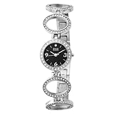 Item DescriptionWhen your special occasion calls for a dazzling display, the ELLETIME Steel Women’s Black Dial Watch is the accessory to choose. Featuring a round black dial with silver-tone Arabic numerals at three, six, and nine o’clock, and a crystal accent at 12 o’clock, the dial is protected by mineral crystal. The bezel showcases a sparkling circle of crystals set on stainless steel and fastened to a matching case. An array of identical crystal-encrusted rings turns the bracelet into a beautiful piece of jewelry and secures around your wrist with a jewelry clasp. When elegance is the only option, this timepiece will do the trick. It is presented with a red gift box and is water resistant to 99 feet (30 meters) |