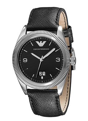 Item DescriptionThis Armani timepiece for men is bold and beautiful. The stainless steel case and black leather strap are complemented by a sleek black dial. The watch features a Swiss quartz movement and a scratch-resistant mineral crystal. Finally, this classic timepiece is water-resistant up to 50 meters, ensuring lasting quality. |