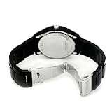 Item DescriptionThe 38mm black dial creates a fantastic appearance on this sleek, stylish watch. The black band helps to bring the look together for something that is sure to catch the eye. The analog display features a high quality quartz movement which is backed by the full manufacturer warranty. This watch is made of stainless steel case and resin band and is water resistant to 100m. |