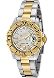 Item DescriptionBoasting high-end fashion and sports-centric features, the Invicta Women’s Pro Diver Mother-of-Pearl Dial Two-Tone Stainless Steel Watch is equally at home alongside formal evening wear or a wetsuit. A stainless steel case provides a home for this watch’s white mother-of-pearl dial, which features luminous baton hour markers and luminous gold-toned hands. A gold-toned 18k gold-plated unidirectional bezel and crown complement the dial and match the watch’s two-toned 18k gold-toned stainless steel bracelet that closes with a double push-button fold-over safety clasp. The dial also features a mineral crystal and a magnified date window at the three o’clock position. Other features include reliable Swiss quartz movement and water-resistance to 330 feet (100 meters). Pro Diver Collection Plunge into any horizon using the steadfast guidance of the Invicta Pro Diver. Stylishly classic, internal workings are forged with variations of either Swiss chronograph or 21-jewel automatic movements and willingly navigate in depths up to 300 meters. Built with confident prowess, the fortitude with which these timepieces function makes the Pro Diver the quintessential in performance. |