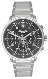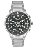 Item DescriptionThe Kenneth Cole Men’s Iconic Chronograph Stainless Steel Bracelet Watch features a handsome black-and-white look. A stainless steel band joins to a circular, stainless steel case that offers two polished push pieces and a crown. The thin width of a polished, stainless steel bezel allows the large, black dial to stand out. White Arabic numeral hour indicators are accompanied by white bar hour indicators. A full set of stick minute markers and Arabic numeral minute markers at five minute increments adds to the complete look of the dial. Polished, stainless steel hands and three subdials round out this Kenneth Cole timepiece. This watch is water resistant to 30 meters. |