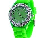 citizen Item ID: #228Ladies Wrist Watch with Matching Silicone Ceramic Style Band/strap Surrounded with Clear Cz Rhinestones Similar to Sandra Bullock in Blind Side ~ Lime GreenProduct Information: