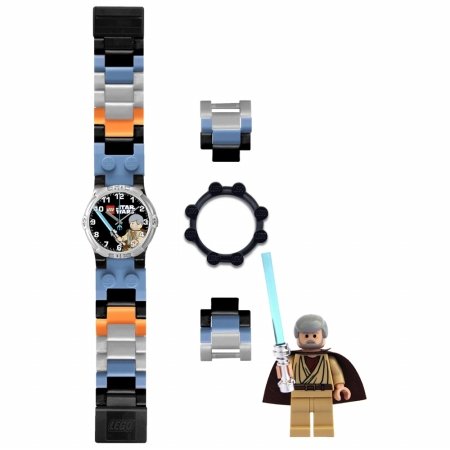 Item DescriptionFeatures include : 50m Water Resistant, Japanese Quartz Movement, Scratch resistant mineral crystal lens, and nickel- PVC Free. Intended for ages 6 and up. Included in Box : 22 tough-wearing Lego links in assorted colors, 2 Lego stud links, 2 interchangeable bezels, and a Star Wars Obi Wan Mini figure with Lightsaber. |
