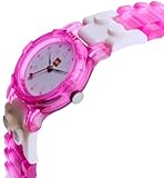 Item DescriptionThis pink and white LEGO watch is perfect for girls who love LEGO and love to have fun creating their own fashion watch. You can customize the bracelet with the interchangeable pink and white links or change the bezel from pink to white. A petite heart on the end of the sweep second hand adds a beautiful accent to the dial. Each BELVILLE watch contains a genuine LEGO building toy. The BELVILLE watch is powered by a Japanese quartz movement and features a scratch resistant mineral glass crystal to insure durability and reliability while maintaining a great look. The watch is water resistant to 165 ft (50 meters), is Nickel/PVC free and has a 2 year warranty. Recommended for ages 6+ |