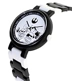 Item DescriptionCombining the love of Star Wars with the love of LEGOs, the LEGO Midsize Star Wars Luke & Han Solo Watch is the perfect first watch for your young one. This ultra-cool timepiece offers a variety of black and white links to fully customize the durable plastic band. The round, white dial features LEGO-style Luke and Hans ready for action. An outside minute track with clear, white Arabic numbers encircles the interior of the bezel, and rectangular, black hands and a long, white second hand round out the dial. Water resistant to 165 feet (50 meters) and protected by a scratch-resistant mineral crystal, this dependable timepiece will withstand the future battles of your young warrior. |