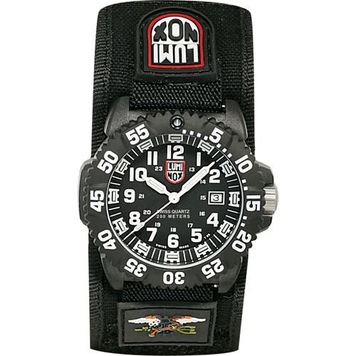 Item DescriptionThe Luminox Men’s EVO Navy SEAL watch features a unique illumination system that glows 100 times brighter than other luminous watches, making it the perfect choice for low-light or non-light situations. This Swiss-made timepiece This versatile timepiece is constructed with a 43.8-millimeter polyurethane case, unidirectional polyurethane bezel with easy-to-read minute indexes, and a matching polyurethane band with Velcro clasp. Eye-catching Arabic numerals adorn the classic black dial face for easy readability, and a handy date calendar rests at the three o’clock position. Powered by analog-quartz movement and protected by a durable mineral dial window, this watch is preferred by US Navy SEALs and US Air Force Pilots, and is water resistant to a depth of 660 feet. |