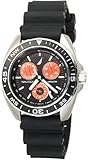 Item DescriptionLook sharp wearing Nautica Men’s Sport Ring Resin Watch, with its useful and stylish design. This high-impact timepiece features a striking red-on-black color scheme. Three small red dials display the day, date, and hour on a large black dial, which also features luminous indexes and hands, and a tachymeter. A mineral window protects the dial and a compass function is included on the unidirectional stainless steel bezel. The 42-millimeter stainless steel case is attached to a black resin band with buckle clasp for a comfortable, casual fit. This watch is water resistant to a depth of 165 feet. |
