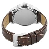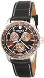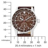 Item DescriptionWorn by extreme sports enthusiasts, the Nautica Men’s Windseeker Multi-Function Watch is durable enough to withstand the roughest of wear, yet classy enough to complement any outfit. This sophisticated timepiece, which is powered by analog-quartz movement, is water resistant up to 165 feet. Dramatic white indexes offset the rich brown dial face, and for additional practicality, a series of Arabic numerals adorn the bezel. Three sub-dials resting at the two, six, and ten o’clock positions mark the day of the week, the date, and the time (in 24-hour units). The case, which measures 38 millimeters, is made of stainless steel, and the texturized brown leather band and accompanying buckle clasp ensure a reliable fit. |