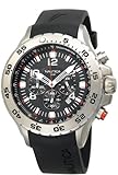 Item DescriptionWhen speed is of the essence, turn to this Nautica stainless steel men’s timepiece (model N14536G), which includes a precisely timed chronograph and tachymeter scale along the outside of the dial for measuring time over distance. Powerfully styled for your sporty side, it has a large stainless steel case (1.91 inches) that’s topped by a ratcheted unidirectional rotating bezel (in brushed stainless steel) with engraved black elapsed time markings. The black textured dial has three chrono subdials–1/5 of a second and 60-minute timers as well as one for 24-hour timekeeping–each of which has a concentric ring texturing. The dial also includes large, luminous hour markers (with oversized markers at the quarter hours), small minute indexes, skeleton hands with large luminous tips (and red seconds hand), and a date window between 4 and 5 o’clock. It’s completed by a comfortable, heavy duty polyurethane resin strap with embossed Nautica logo and a stainless steel buckle. Other features include Japanese quartz movement, screw-down crown and selector buttons, scratch-resistant mineral crystal, and water resistance to 100 meters (330 feet)–offering protection from accidental splashes as well suitable for swimming, snorkeling, and light recreational diving. |