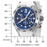 Item DescriptionThe perfect watch for sporty guys, this chronograph by Nautica keeps you on track and in style. It features an ultra-comfortable band paired with a 53-millimeter case and blue dial. The unidirectional bezel doubles as a seconds dial and the face has three sub-dials and a date display. Powered by chronograph movement, this luxurious sports watch is water resistant to a depth of 330 feet. |