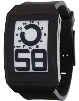 Item DescriptionElectronic ink is a proprietary material that is processed into a film for integration into electronic displays. Revolutionary in concept; electronic ink is a fusion of chemistry; physics and electronics to create this new material.Band Color : Black Rubber; Band Width : 23mm near case; 23mm near clasp/buckle; Bezel Color : Black; Case : Black + Rectangle-shaped; Case Finish : Polished + Stainless Steel; Case Thickness : 12mm; Case Width : 33mm; 33mm with crown; Clasp / Buckle : Strap Buckle; Dial : Black-and-white + digital; Hand Color : Black-and-white; Movement : Other + quartz; Time Zones : Single; Water Resistance : 5 atm; Other Features : Date and Month Display; Alarm |