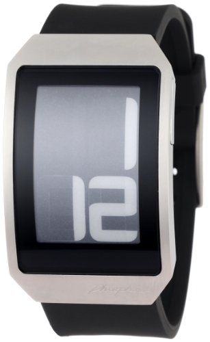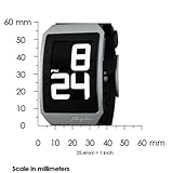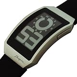 Item DescriptionYou have never seen a digital watch quite like this before. Its ergonomic curved case with ultra-thin profile fit so comfortably on your wrist you may forget you are wearing it, but others will not. The digital display utilizes the revolutionary E Ink electronic paper display featuring its paper-like, high contrast readability that is sure to be noticed by others around you. A standard numeric digital display in one mode, a graphic hour clock display in another, and ability to switch between white-on-black to black-on-white time display give this digital watch a style all its own. Case width – 38.0mm. Ultra thin thickness – 8.0mm. Water resistance – 5 ATM – 50m. Display – 12 hour only. Polyurethane Band. |
