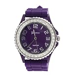 Geneva Item ID: #1153Purple Silicone Gel Ceramic Style Band Crystal Bezel Women’s WatchProduct Information: