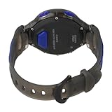 Item DescriptionSport watch, Digital quartz movement, Positive (dark-on-light) numbers, Touch TapTM technology (allows wearer to time each lap by tapping top of watch case), Dual time feature, 1/100-second digital chronograph with available 150 lap memory, 10 segment interval timer, Alarm mode, EL backlight, Digital day-date-and-month display, Digital grey dial, Hinged semi-transparent black silicone strap with blue plastic inserts and Aqua LockTM black plastic buckle, Black polycarbonate bezel with blue logo applique, Semi-transparent black polycarbonate round case, Blue plastic Hydro PushersTM, Stainless steel screw-in caseback, Mineral crystal, 100 meters/330 feet water resistant |