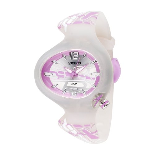 Item DescriptionThree-hand Japanese Quartz movement featuring day/night color-changing strap, Polished purple hour and minute hands with luminous accents and purple sweep seconds, White/silver-tone luminescent Arabic numbers at 12 and 6 and matching teardrop hour markers, Analog display, White semi-translucent polycarbonate case marked with Speedo logo, Polished crown with purple accents, Stainless steel caseback, 100 meters/330 feet water resistant |