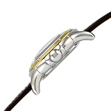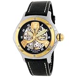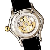 Item DescriptionThis Stuhrling Alpine men’s watch exhibits a unique and enticing style that is sure to turn heads. The large 52-millimeter, surgical-grade stainless-steel, round case sports, and a skeletonized black dial with a gold-plated propeller-style faceplate, and luminous cigar-style hands outlined in gold. Protected by a domed mineral sapphire crystal, the face boasts embossed Arabic numerals at 4, 8, and 12 o’clock, and printed five-minute markers. Constructed of stainless-steel, the gold-plated chakram bezel, and globular crown with its black-rubber equatorial ring finish off the rarefied centerpiece. This unrivaled chronometer is showcased on a black 46-millimeter, genuine French-leather strap that features contrasted stitching, quick-release pins, and a stainless-steel tang-buckle clasp. As robust as it is exceptional, this analog watch runs on a 20-jewel, mechanical automatic movement that is powered by the motion of your wrist and is water resistant to a depth of 165 feet. |