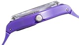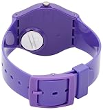 Item DescriptionCasual watch, Swiss quartz movement, Black hands with luminous accents and sweep seconds, White Arabic numbers with indices, Glossy purple plastic round case, Glossy purple plastic caseback with easy-access battery replacement, Textured metal crown, Water resistant |