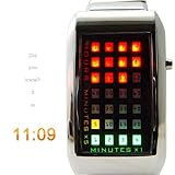 Item DescriptionThe Continuum, a red, yellow, and green LED watch from the future manifests the nucleus of cool by reinventing how we tell time. You mean this watch really tells the time? Yes. Even though The Continuum symbolizes herculean style and front-trend design with its hypnotic red, yellow, and green LEDs encased in argentum hues (like colliding subatomic particles in a swirling soup of primordial matter), this Japanese LED watch does in fact tell the time and does so really efficiently too! Tap the display button on the right side of the timepiece and watch the screen light up. The red squares represent hours. The yellow squares represent 5 minute intervals and the green lights represent 1 minute intervals. It’s not 1 : 16pm! It’s red, yellow, yellow, yellow, green pm! How’s that for grand unified awesomeness? Alluring to behold you must be careful though. When you look into this watch, this watch also looks into you! Of course you needn’t be Dr. Who or a Starship Captain who was assimilated by the Borg to wear this watch. In fact this watch is perfect for your average geneticist, botnet herder, Firefly fan, uber geek, Hugo award winner, or anybody who is a somebody. |