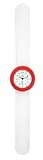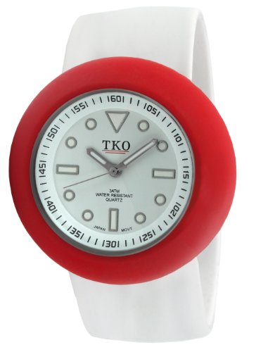 Item DescriptionContemporary and hip, the TKO ORLOGI Women’s Slappers Interchangeable Watch features a three-part, interchangeable slap bracelet reminiscent of the slap bracelets popular in the early 1990s. The slap bracelet is made of rubber, fits virtually any wrist, and is comfortable to wear. Complementing the watch’s white bracelet is a red case, which provides an ideal setting for the attractive white dial. The dial boasts luminous baton, orb, and triangular hour markers. The dial also features an outside minute track, and the entire dial is protected by a mineral crystal. Other features include reliable quartz analog movement and water resistance to 99 feet (30 meters). |