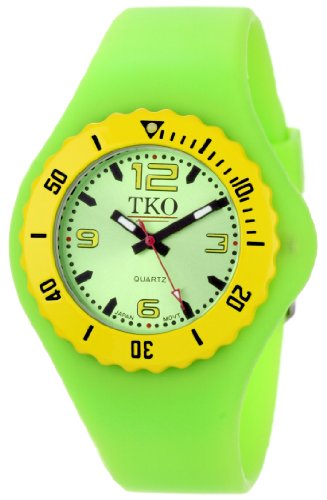 Item DescriptionThis TKO ORLOGI Beach watch features an all Green case and dial with an Yellow sport bezel. This watch is the perfect sport watch for the Summer. Ultra lightwieght desing and covered crown give it extra durability. Back by a 5 year limited warranty provided by TKO ORLOGI. |